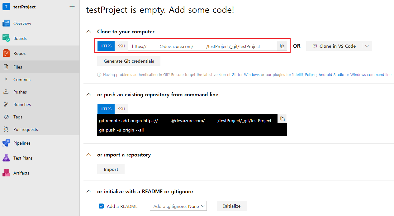여기까지 Azure Repos 저장소를 사용하기 위한 모든 설정 완료되었습니다.