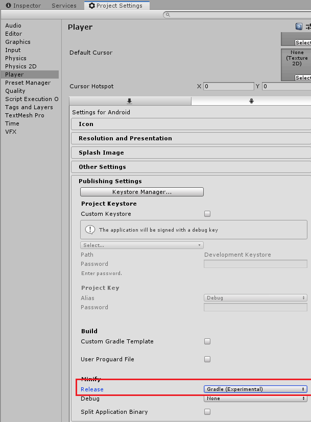 Player -> Project Settings -> Publishing Settings -> Minify -> Release 를 Gradle <Experimental> 로 변경해주면 됩니다.