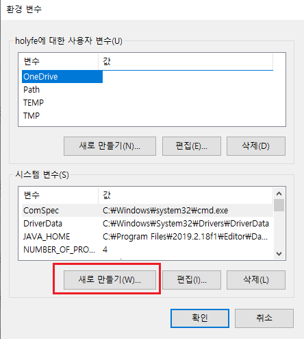 5. 새로 만들기 클릭 (만약 기존에 JAVA_HOME이 있다면 편집으로 경로만 변경해줘도 됩니다.)