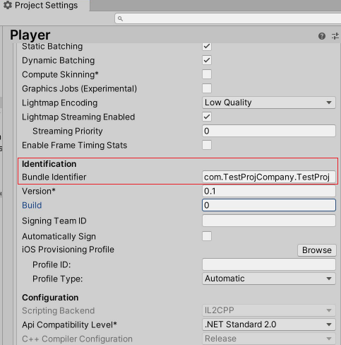 완료되면 Project Settings 에서 Bundle Identifier 를 입력합니다.