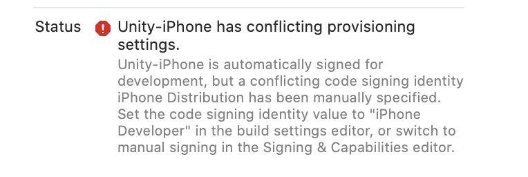 [유니티 / iOS] Unity-iPhone has Conflicting Provisioning Settings 오류 대응하기