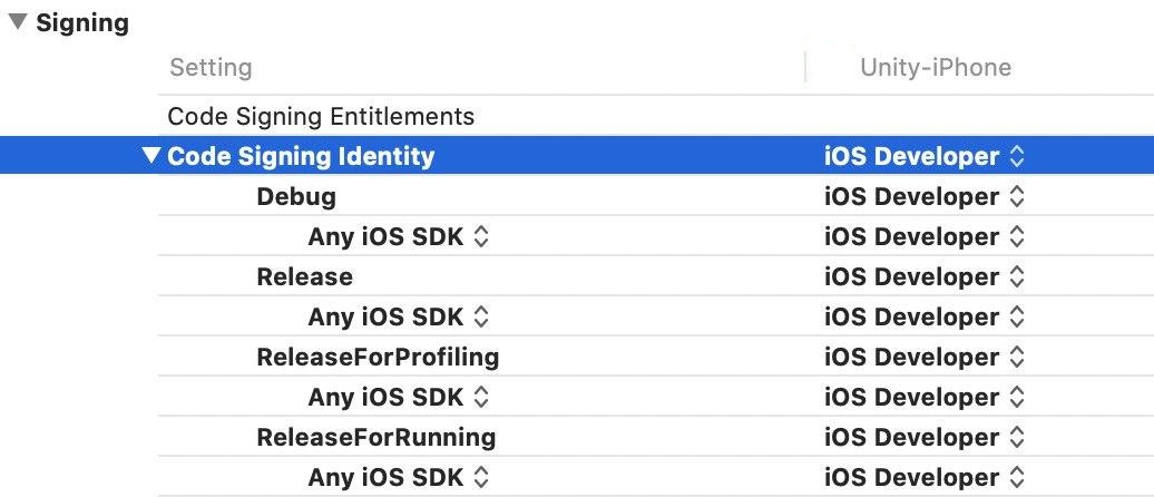 스크롤을 내려서 Signing 에서 Code Signing Identity를 iOS Developer로 변경합니다.
