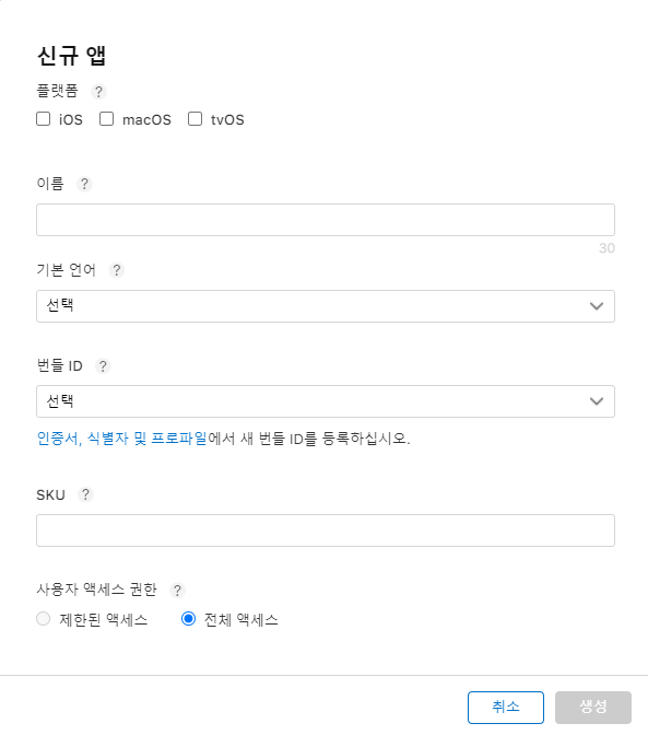 App ID 생성 후 다시 처음의 신규 앱 등록으로 돌아가서 보면