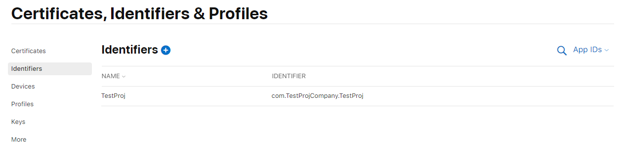여기에서 Identifiers 옆에 + 버튼을 선택합니다.