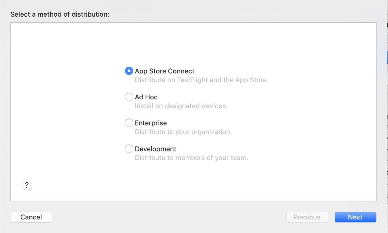 오른쪽에 Distribute App 선택