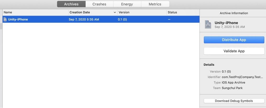 | [유니티 / iOS] TestFlight 로 업로드한 앱 테스트 하기 (0) | 2020.09.09 |