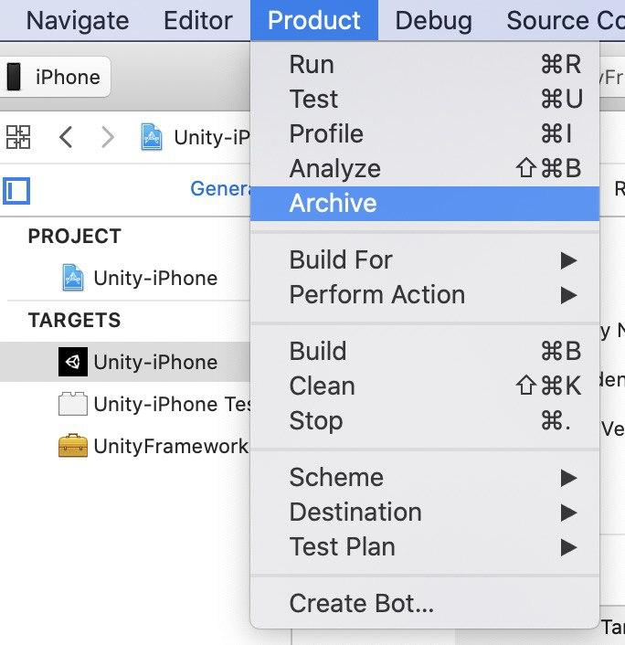 위 2가지가 준비되었다면 xCode에서 Product -> Archive 를 선택합니다.