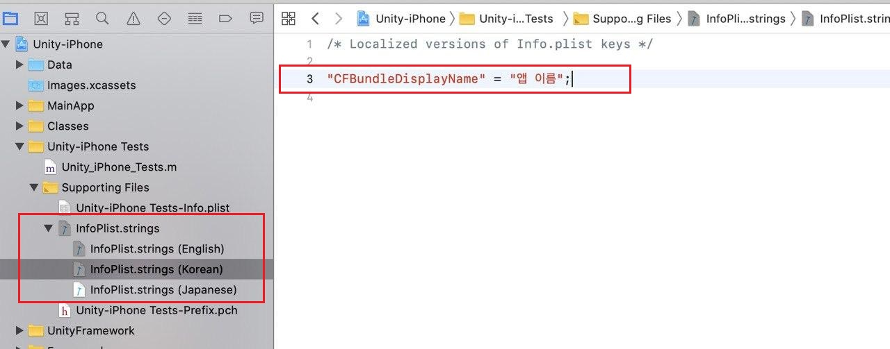 [유니티 / iOS] iOS 앱 이름 다국어 설정하기