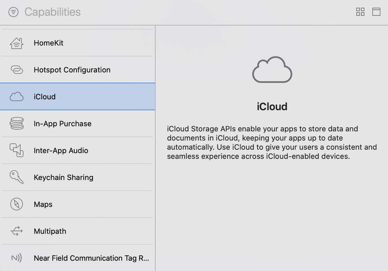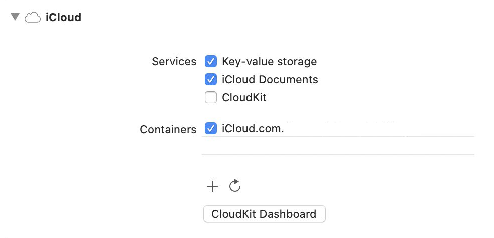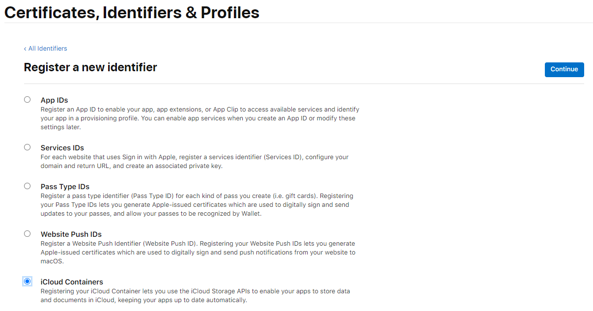iCloud Containers 를 선택 후 Continue