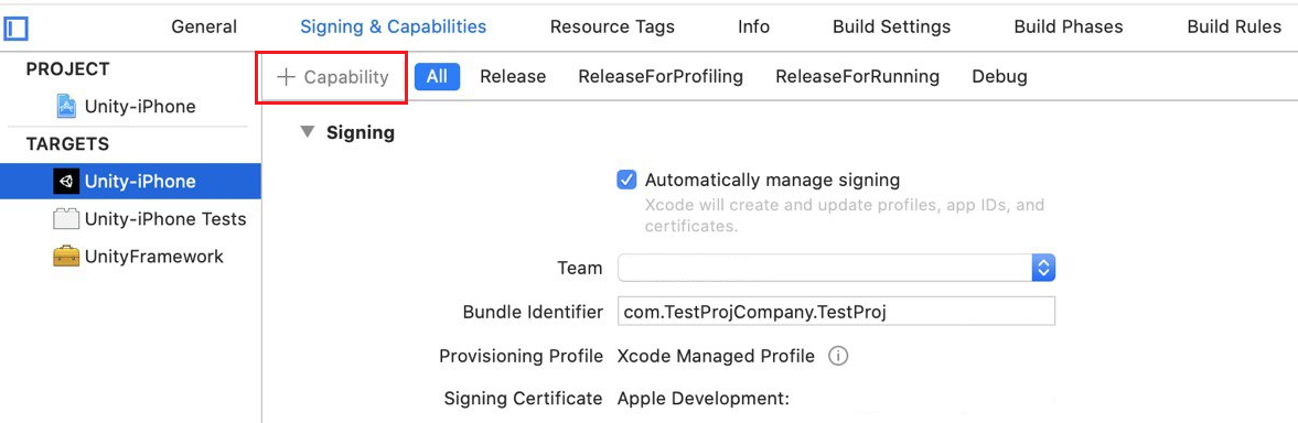 작업할 프로젝트에서 Signing & Capabilities에서 +Capability를 선택합니다.