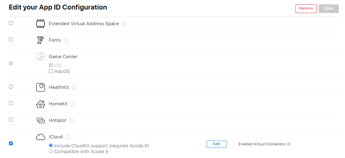 Certificates 에서 iCloud를 체크합니다.
