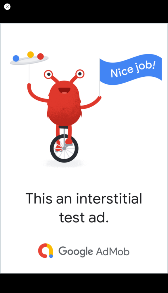 테스트 버튼을 누르면 이렇게 전면 광고가 출력됩니다.